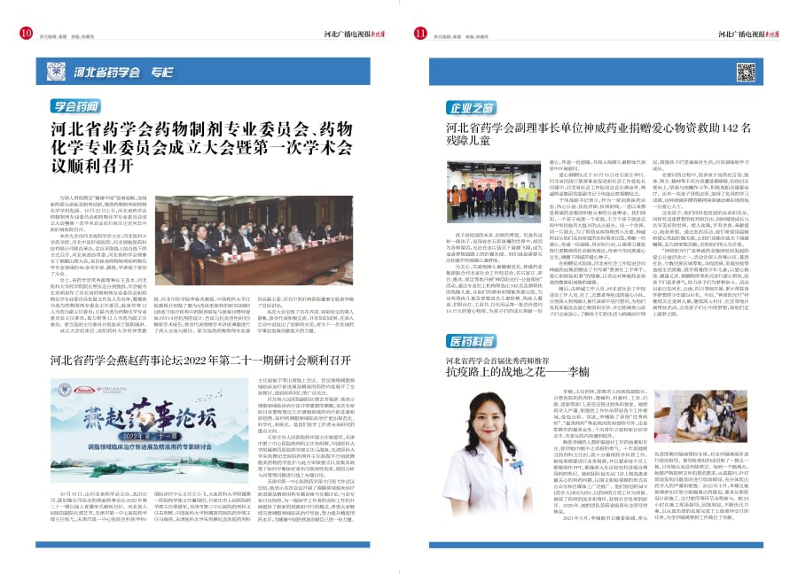 2022年第41期河北广播电视报河北省药学会专栏