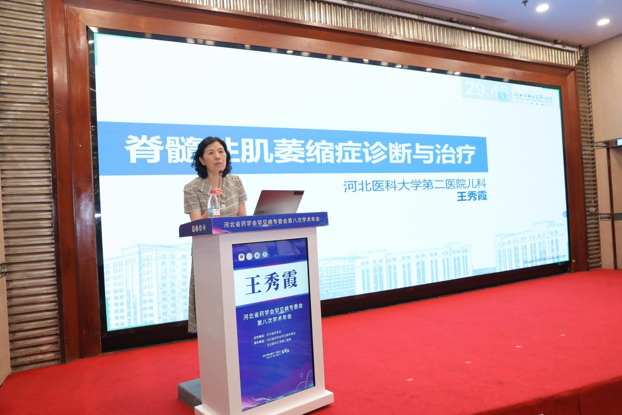 7.河北医科大学第二医院王秀霞教授分享了《脊髓性肌萎缩症的诊断与治疗》,专家指出脊髓性肌萎缩症由运动神经元存活基因1 突变所致,可依发病年龄和临床进程分型。诊断依靠基因检测等,治疗有诺西那生钠等药物。同时还需多学科协作,配合康复训练,以改善患者预后。