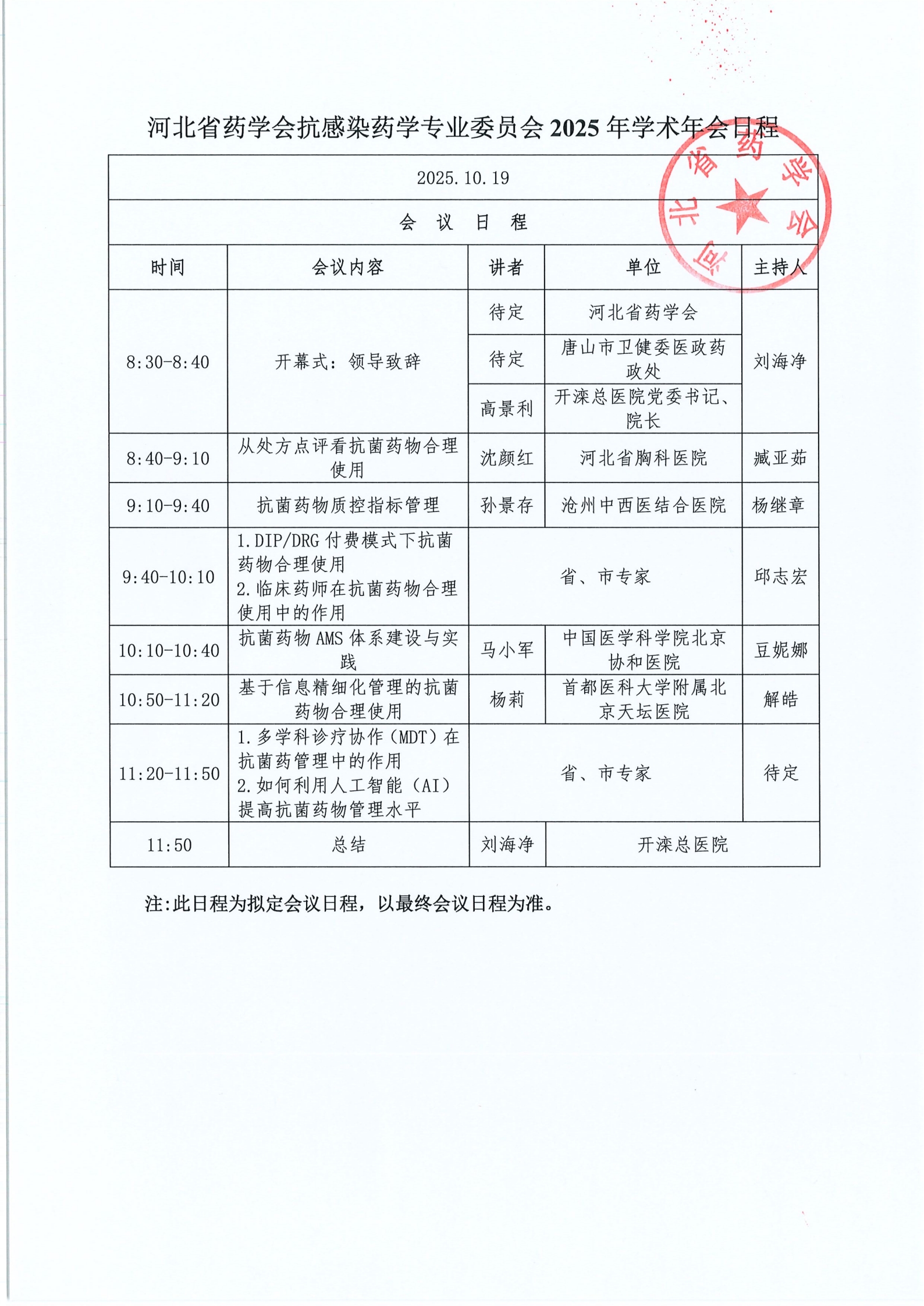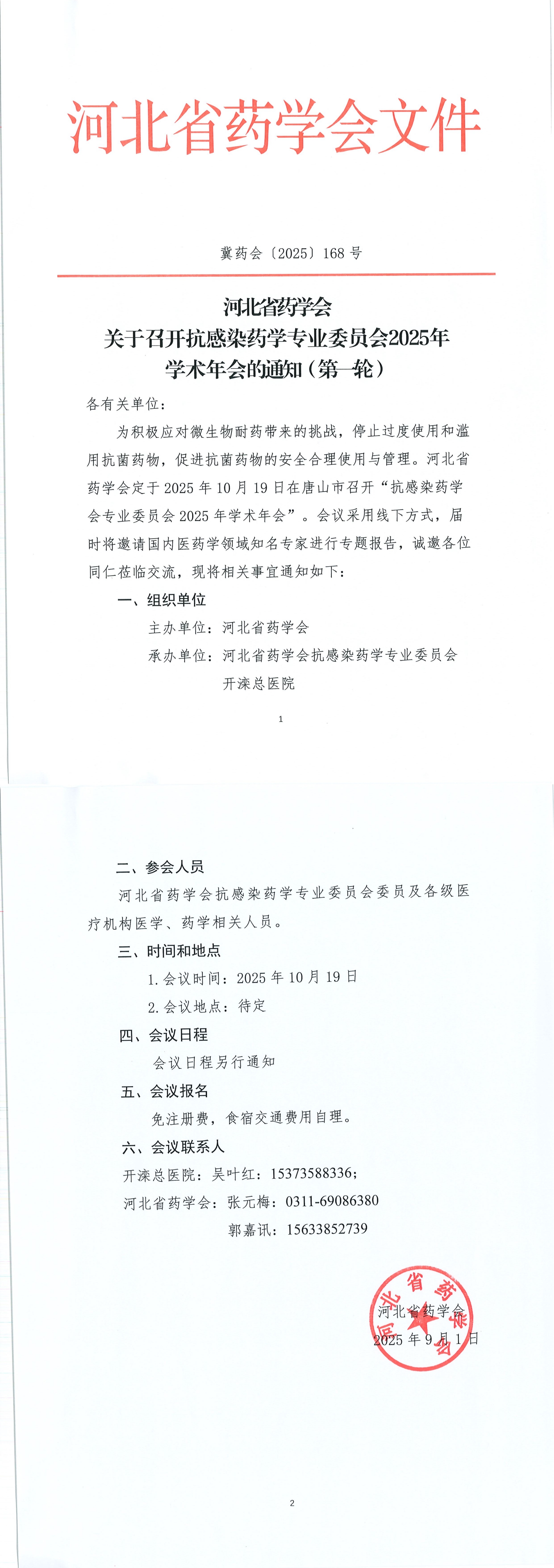 河北省药学会关于召开抗感染药学专业委员会2025年学术年会的通知(第一轮)