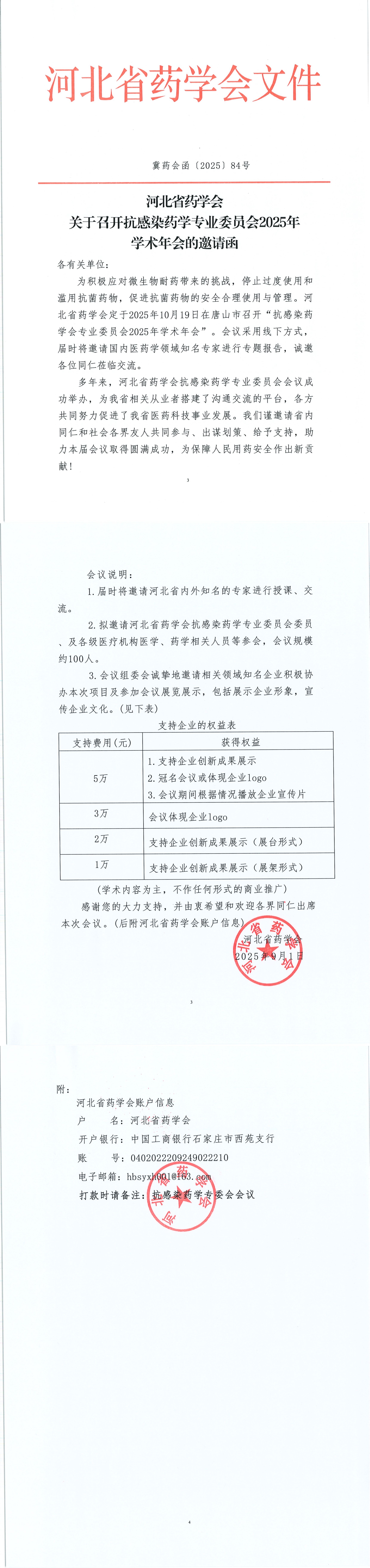 河北省药学会关于召开抗感染药学专业委员会2025年学术年会邀请函