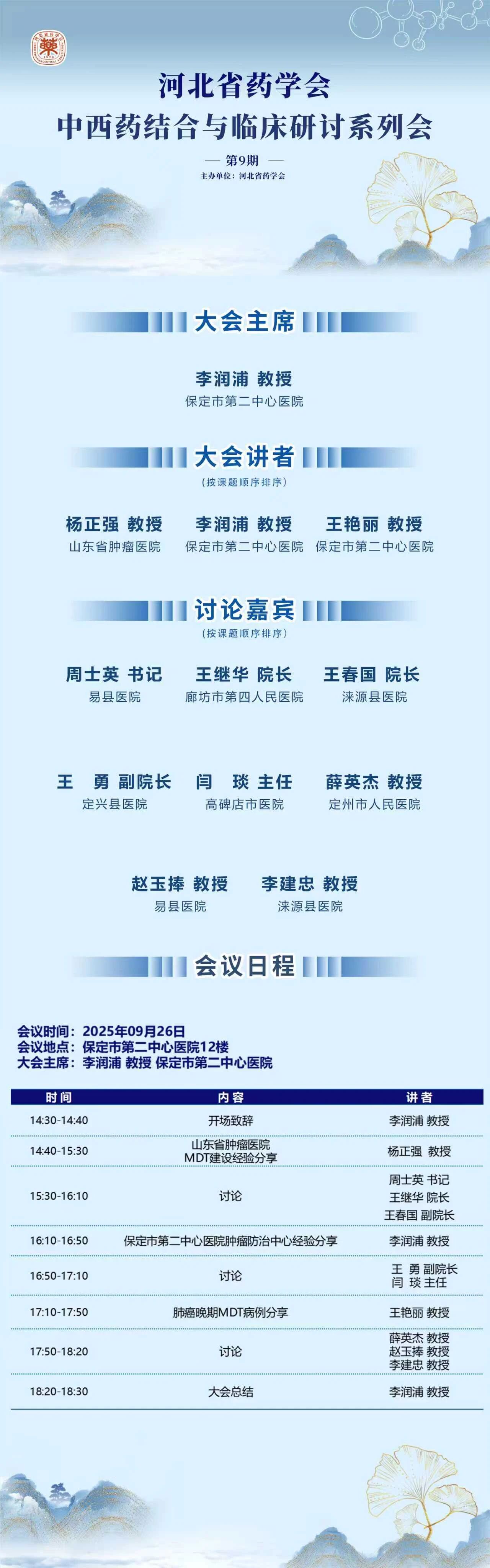 河北省药学会中西药结合与临床研讨会第9期日程公布