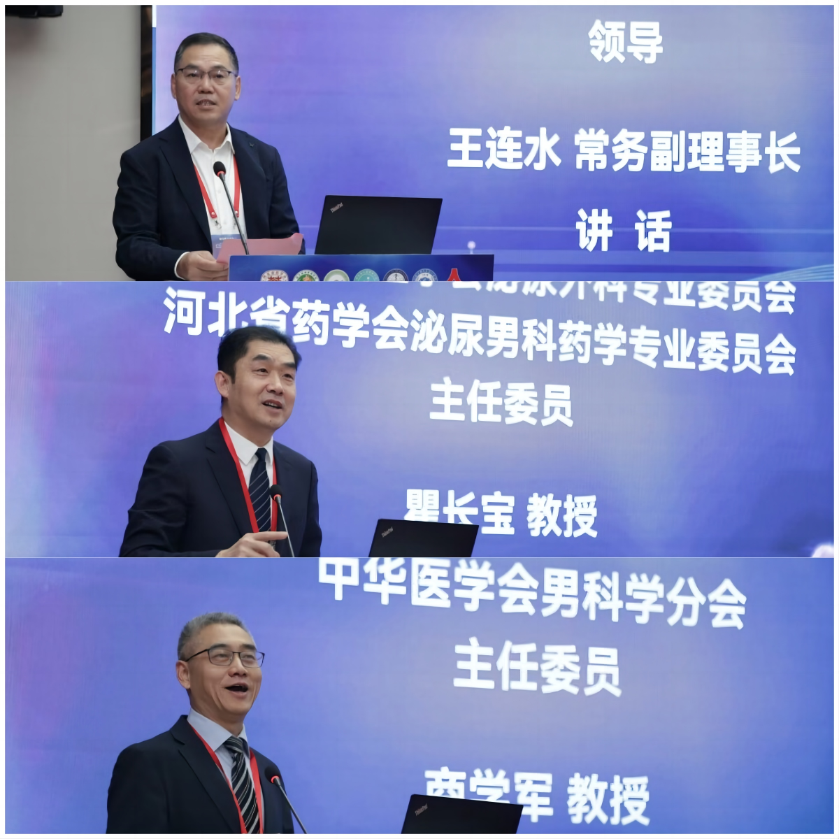 此外,会议设置经验交流环节,与会人员积极参与互动,围绕临床复杂病例的诊疗难点、用药争议点分享实践经验与专业见解,形成高效的学术交流氛围。整场会议学术氛围浓厚,不仅拓宽了与会者的专业视野,更通过深度沟通达成多项行业共识,为共同推动我国泌尿男科药学领域的持续发展注入新动力。河北省药学会常务副理事长王连水、河北省药学会泌尿男科药学专业委员会主任委员瞿长宝、中华医学会男科学分会主任委员商学军为会议致辞。