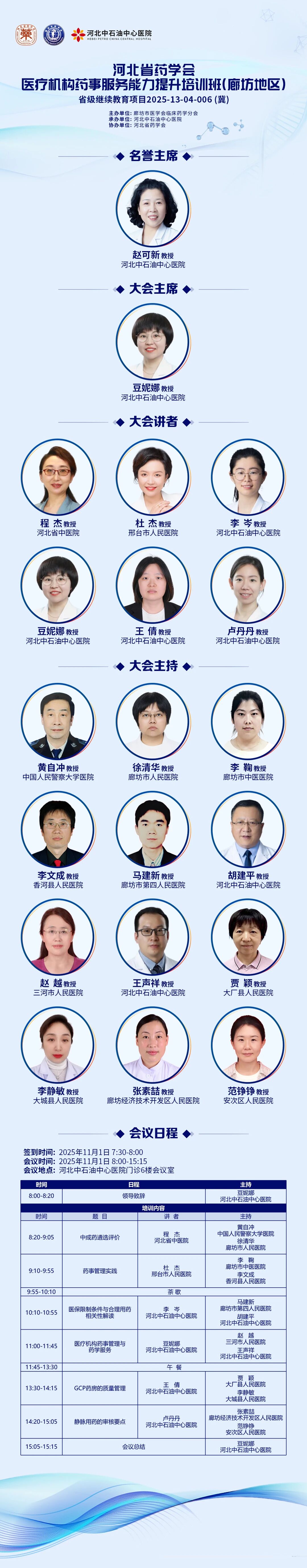 河北省药学会医疗机构药事服务能力提升培训班(廊坊地区)日程公布