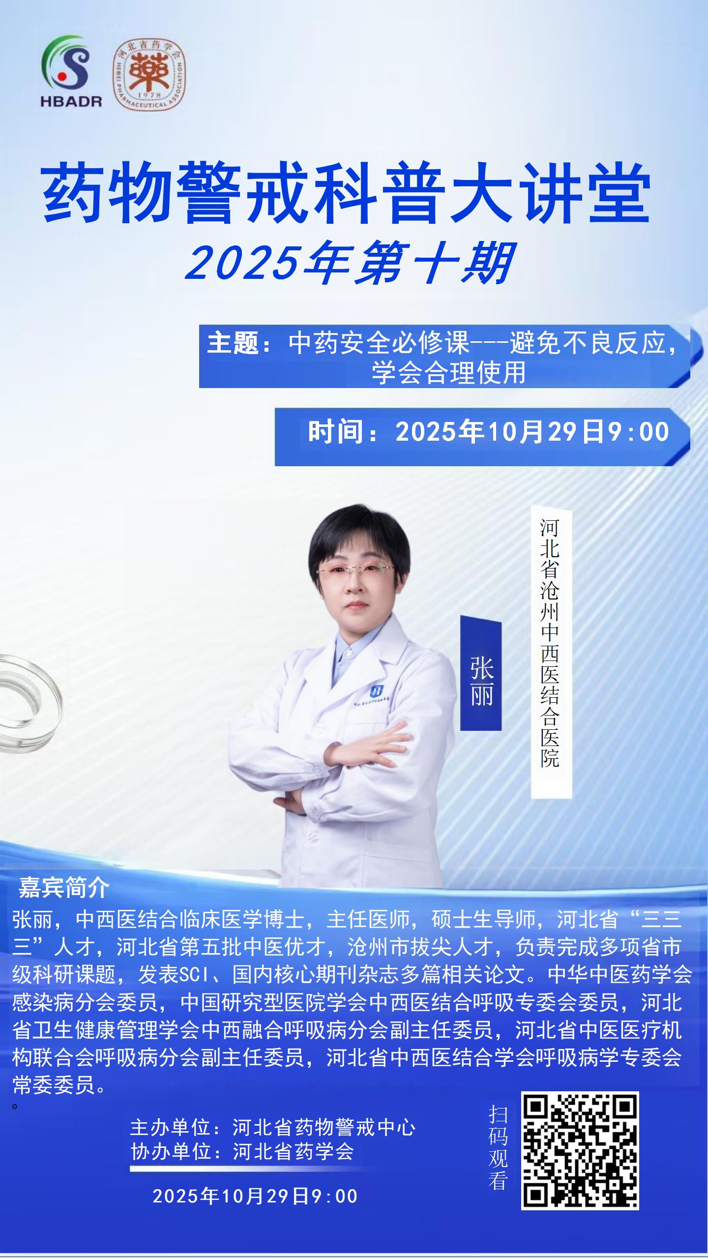 河北省药学会药物警戒科普大讲堂2025年第十期日程公布