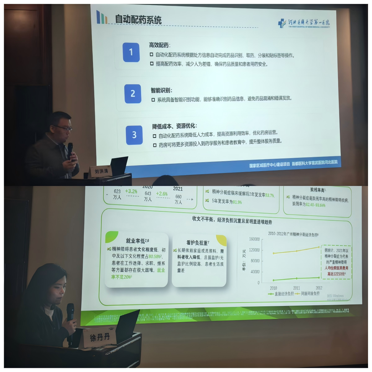河北医科大学第一医院刘洪涛、衡水市第七人民医院徐丹丹分别作题为《AI工具在药学工作中的应用体会》《精分药物的新进展》解读的报告。