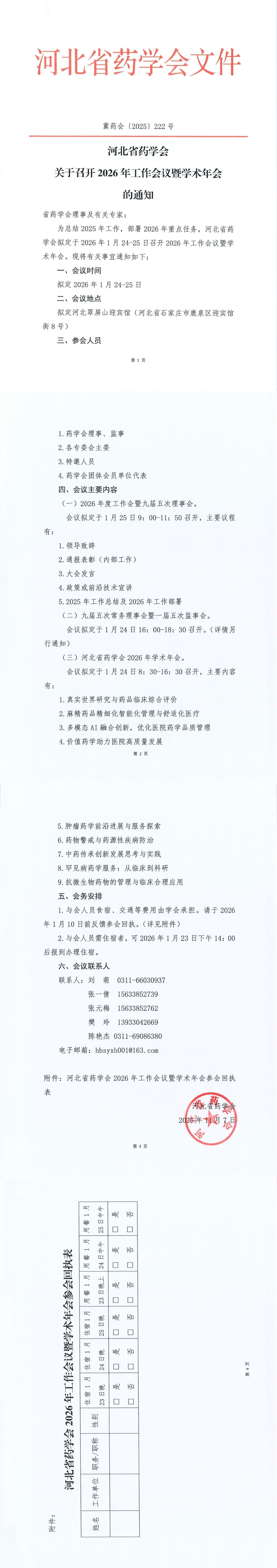 河北省药学会关于召开2026年工作会议暨学术年会的通知
