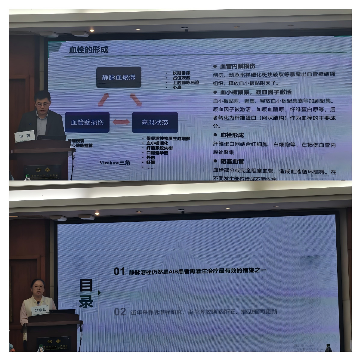 河北医科大学第四医院冯锐、河北医科大学第一医院刘晓云分别作题为《从药学角度浅析溶栓药物在急性缺血性卒中领域的应用》《从急性缺血性卒中溶栓研究进展看国内外指南更新》解读的报告。
