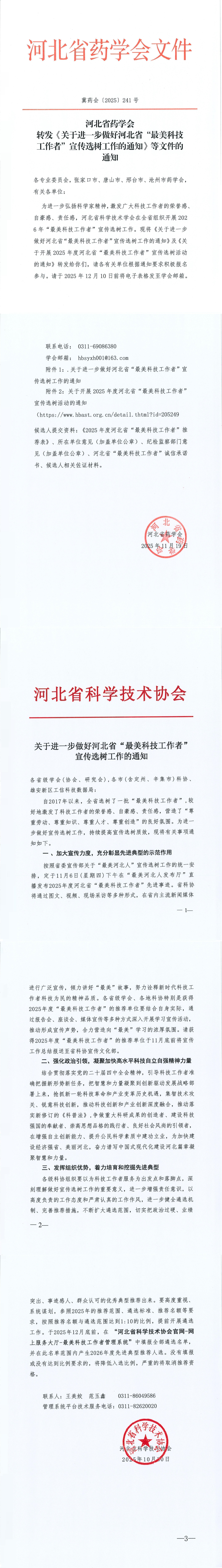 河北省药学会转发《关于进一步做好河北省“最美科技工作者”宣传选树工作的通知》等文件的通知