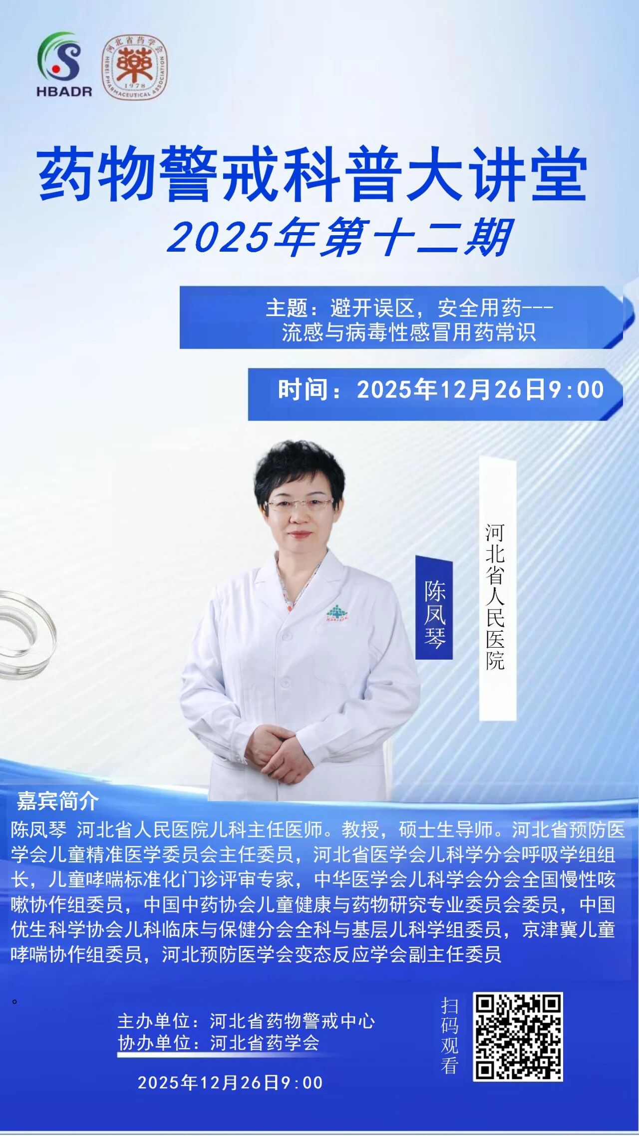 河北省药学会药物警戒科普大讲堂2025年第十二期日程公布