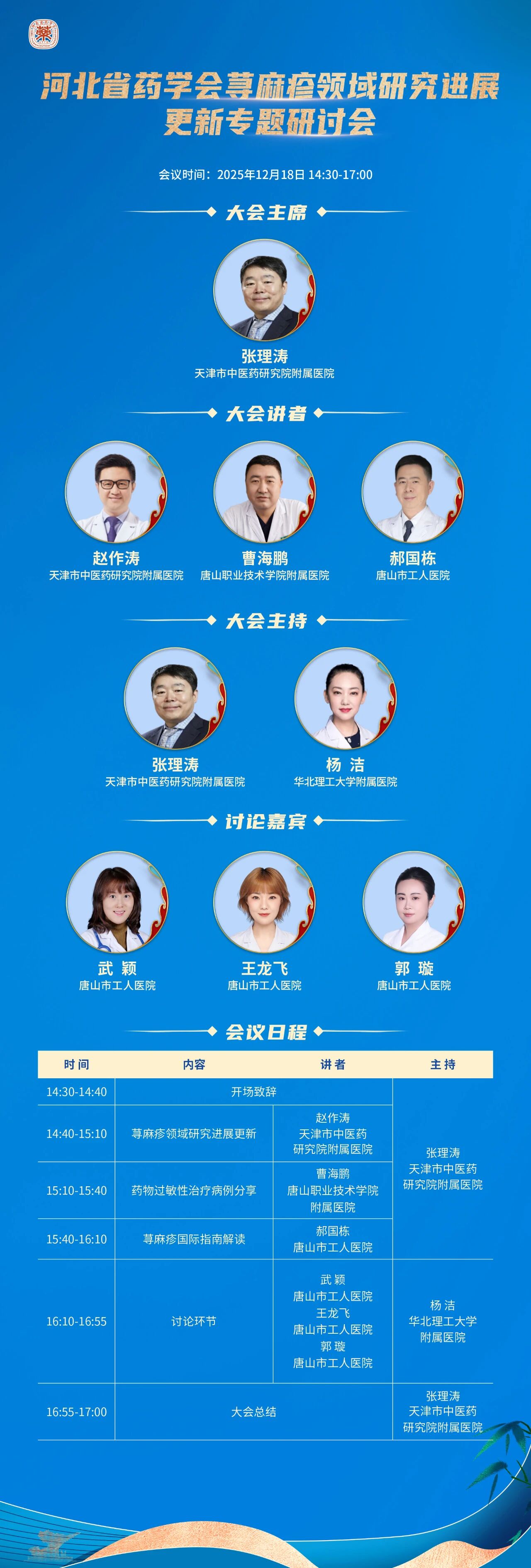 河北省药学会荨麻疹领域研究进展更新专题研讨会日程公布