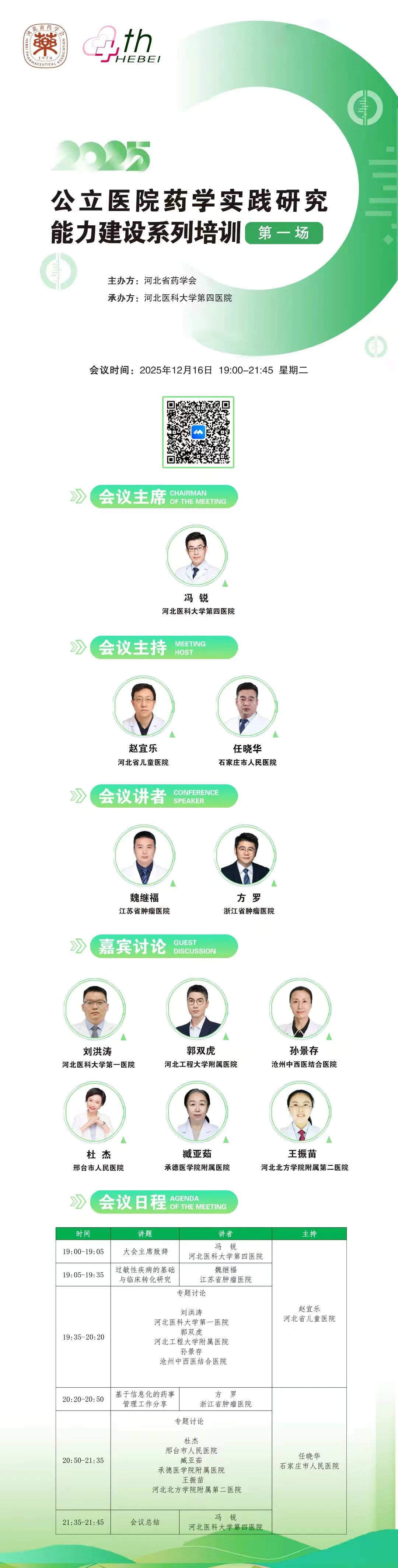 河北省药学会2025公立医院药学实践研究能力建设系列培训第一场日程公布