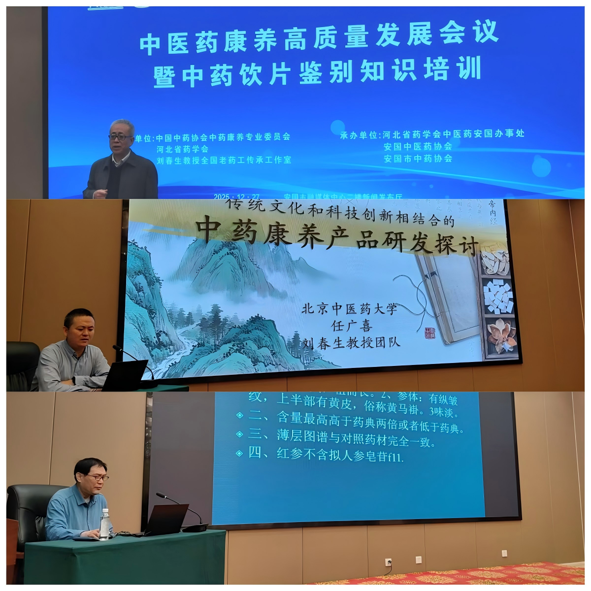 2025年12月27日,由中国中药协会中药康养专委会、河北省药学会、刘春生教授全国老药工传承工作室主办,由河北省药学会中医药安国办事处、安国中医药协会、安国市中药协会承办的中医药康养高质量发展会议暨中药饮片鉴别知识培训在安国市顺利召开。